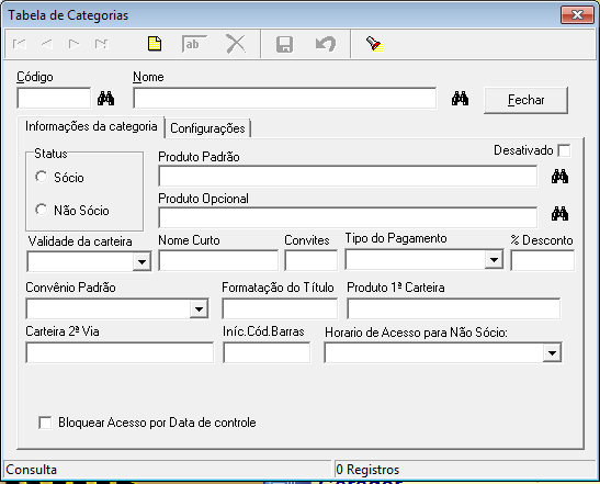 INíC. CÓD. BARRAS: Campo onde pode-se definir uma numeração inicial do código de barras para as carteiras emitidas para o sócio que possuir esta categoria, como por exemplo: 99, assim o código de barras será 99010000001;